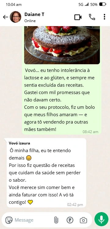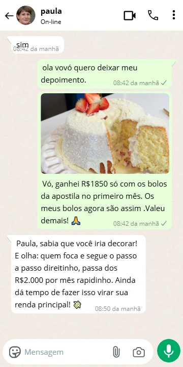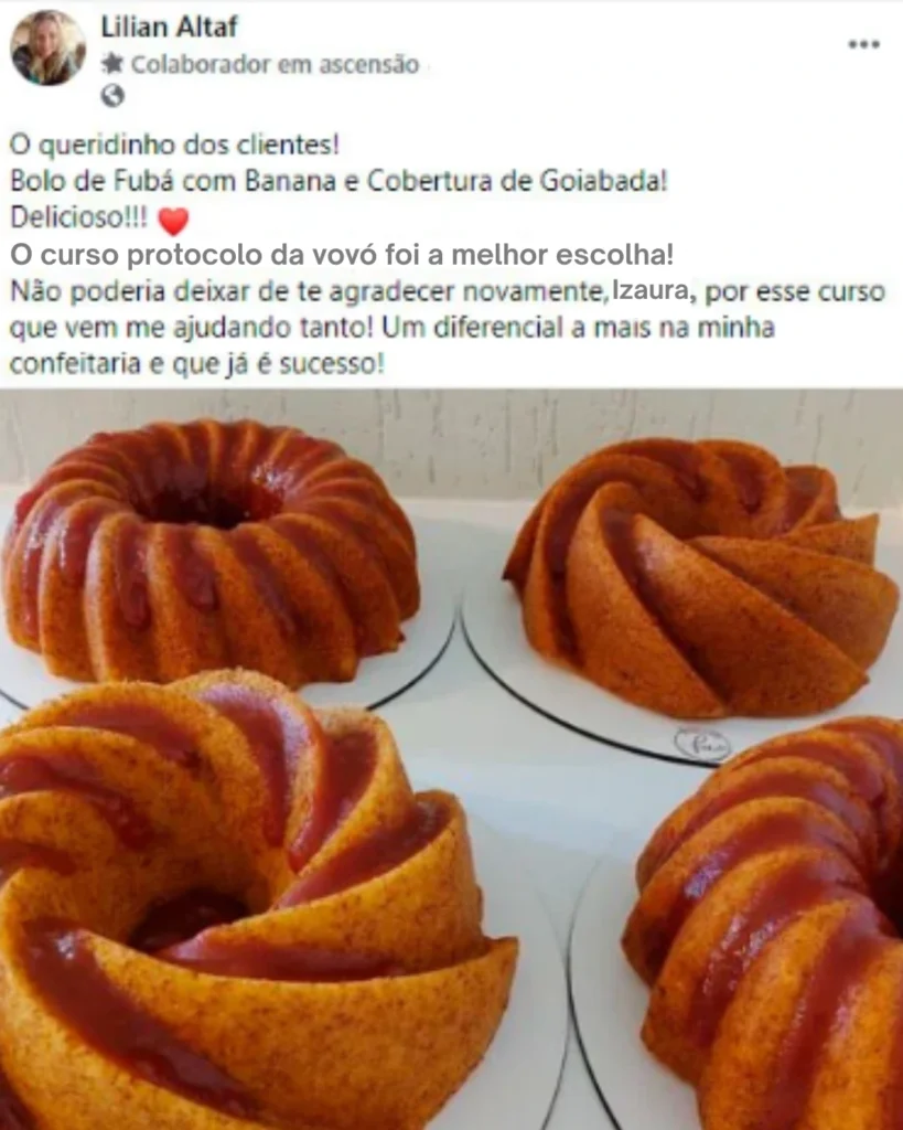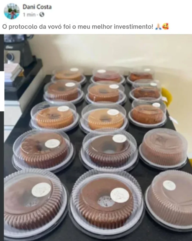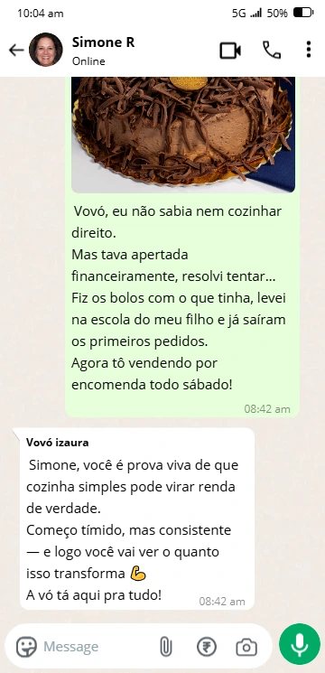 Mas depois de testar, anotar e ajustar cada detalhe, criei o Protocolo Bolos da Vovó™ — o passo a passo que virou a renda de milhares de mulheres.