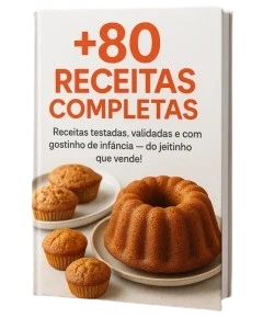 Receitas testadas, validadas e com gostinho de infância — do jeitinho que vende! Mesmo que você não tenha tempo ou forno potente, as receitas foram feitas pra dar certo até no fogão simples.